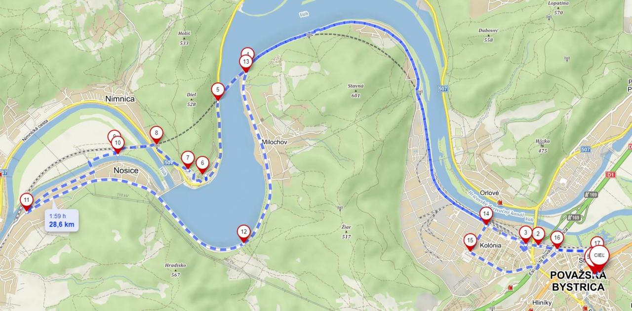 Mapa trasy podujatia na bicykloch okolo priehrady