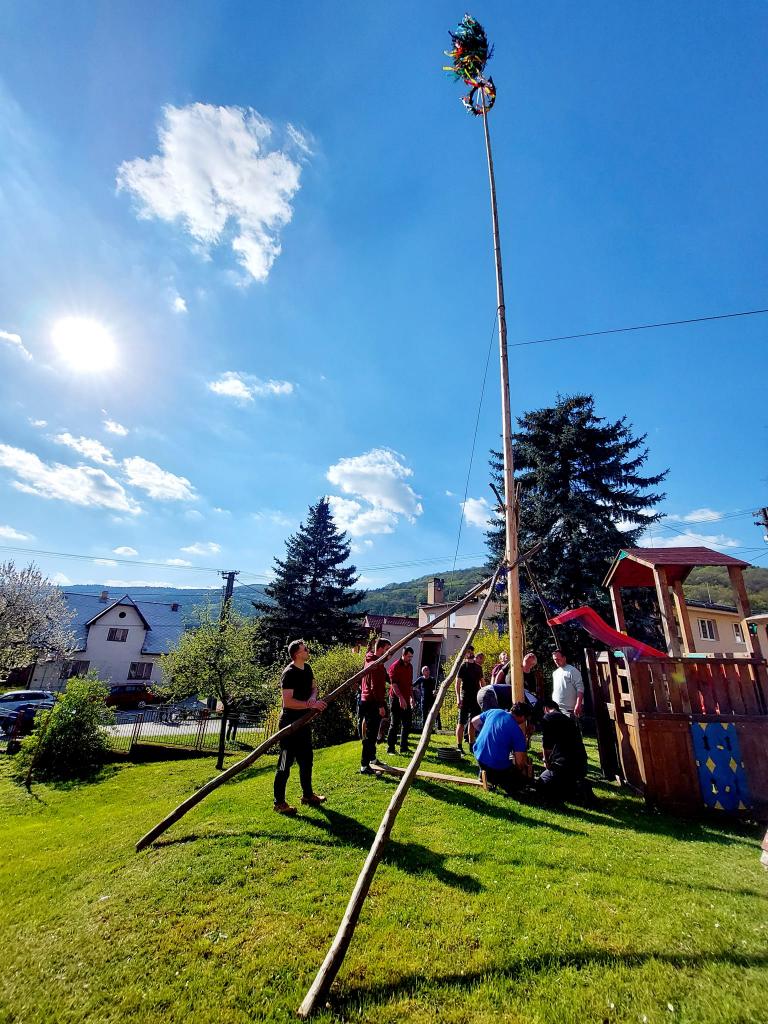 V nedeľu, 30.4.2023, deti ozdobili a chlapi postavili MÁJ