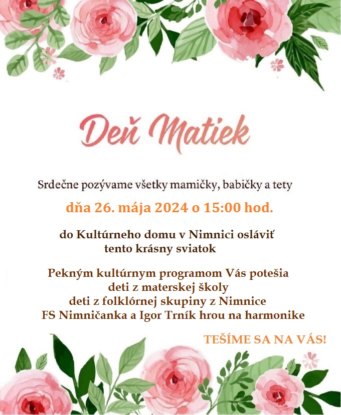 Srdečne pozývame všetky mamičky, babičky a tety osláviť tento krásny sviatok